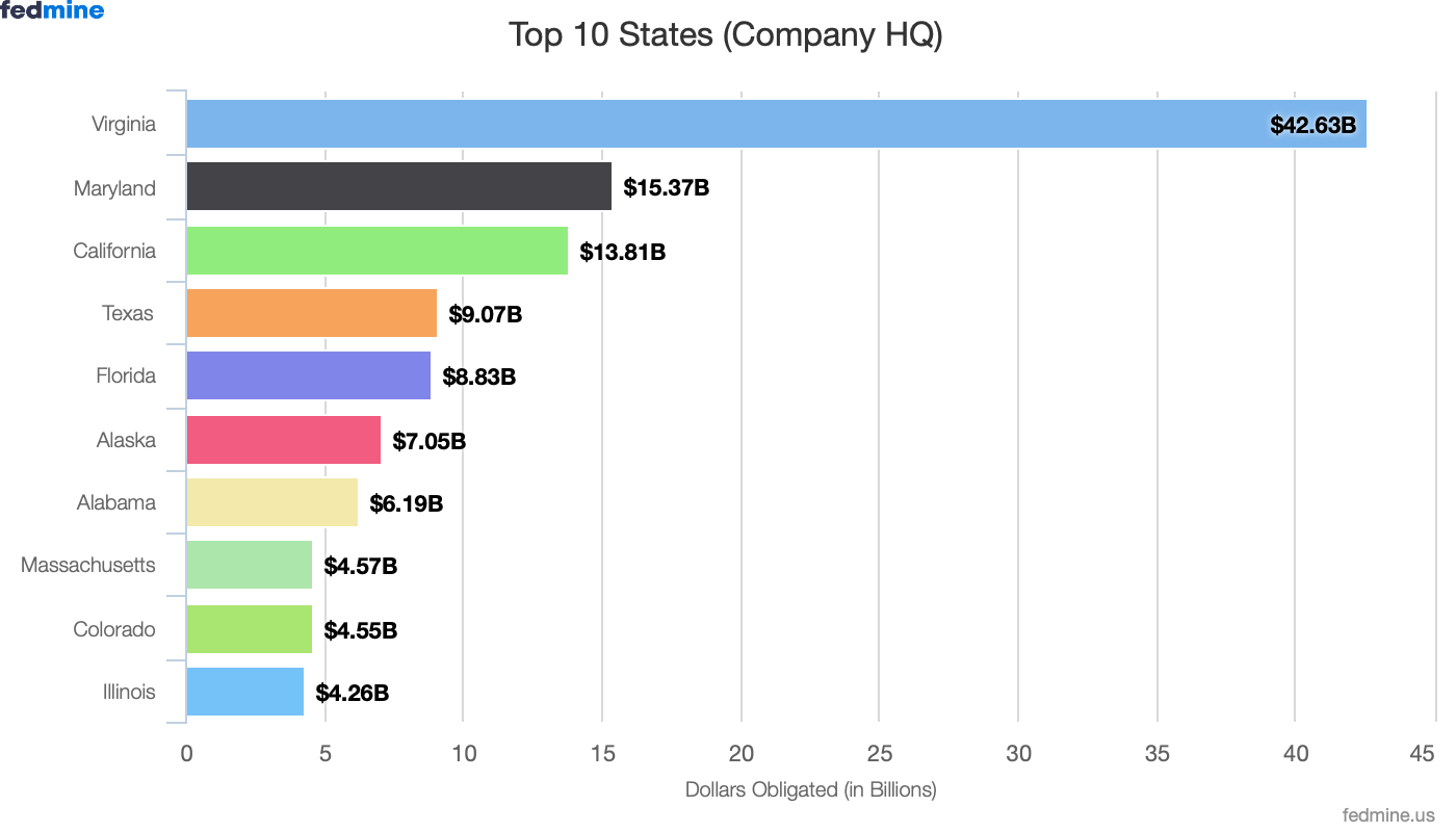 Virginia continues to dominate as the leading state for small business federal contractors, with 7,192 businesses accounting for more than $42B, or 24%, of small business contracts.