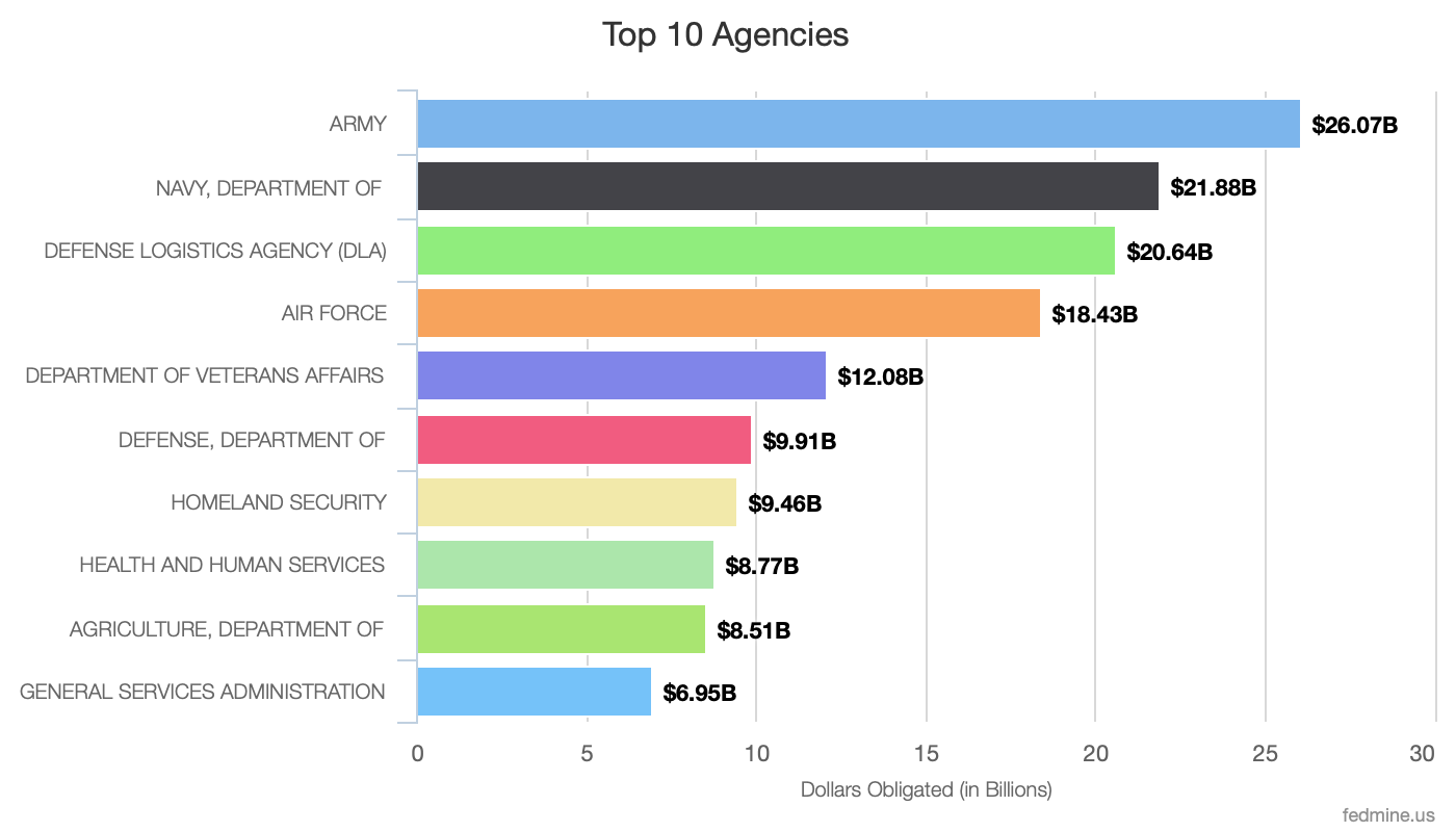 An agency’s mission will determine its acquisition strategies and what it buys. Typically, we see the defense agencies lead in awards to small businesses.