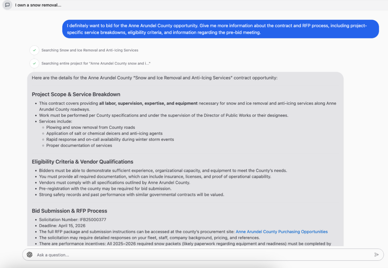GovSpend gives you the tools to do just that, helping snow contractors find more opportunities, vet them faster, and submit high-quality proposals without the manual burden.