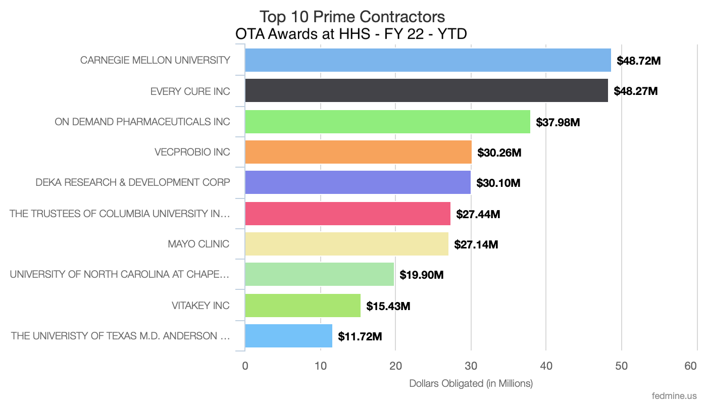 The Dept of Energy has funded less than $22M under OTAs, which was awarded to Advanced Technology International.