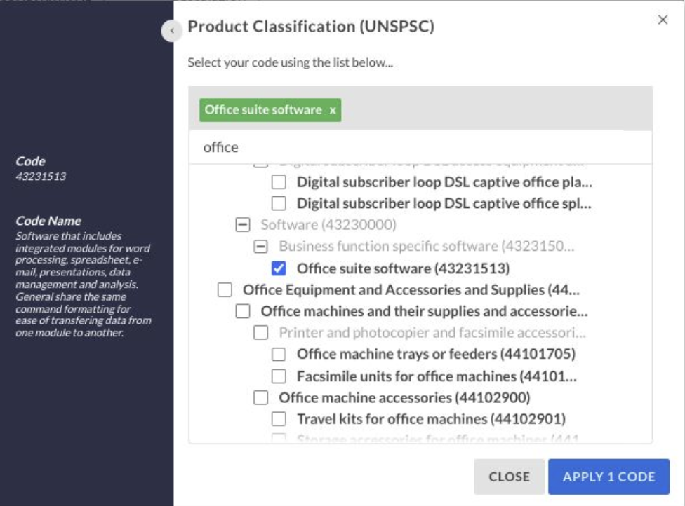 - Improved Search Efficiency: Filtering search results by specific product/service categories, such as Software or Office Supplies, reduces the need for multiple keyword combinations as well as the number of irrelevant results.